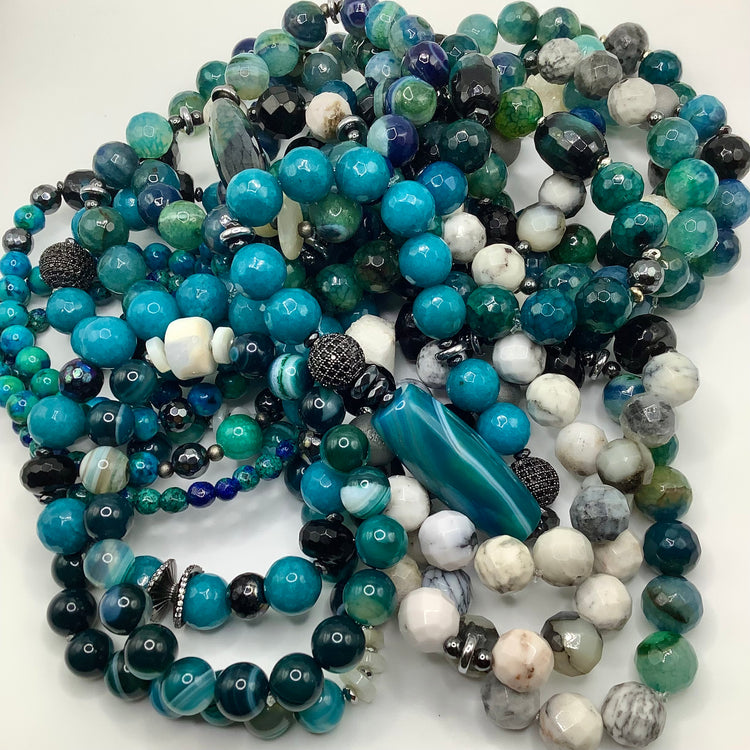 Jade, Agate, CZPave, Silver Hematite 12mm