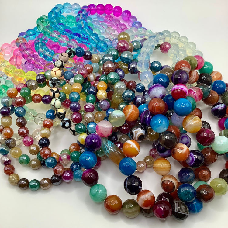 Electroplated Agate, Quartz 8-10mm 2pc set