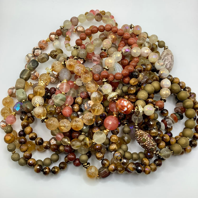 Crafted with a harmonious blend of earthy tones and exotic gemstones, our Safari Serenity bracelets capture the essence of the savanna. Picture the golden hues of the African sunset reflected in rich citrine, the tranquil waters of the river mirrored in soothing agate, and the vibrant sunset of the jungle echoed in vibrant jade.