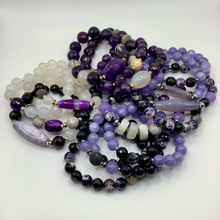 Embrace the opulence of royalty with our Royal Amethyst collection, perfect for adding a touch of regal elegance to any ensemble. Whether worn as a statement piece or layered for a more subdued effect, these bracelets are a testament to the enduring allure and timeless beauty of purple gemstones.
