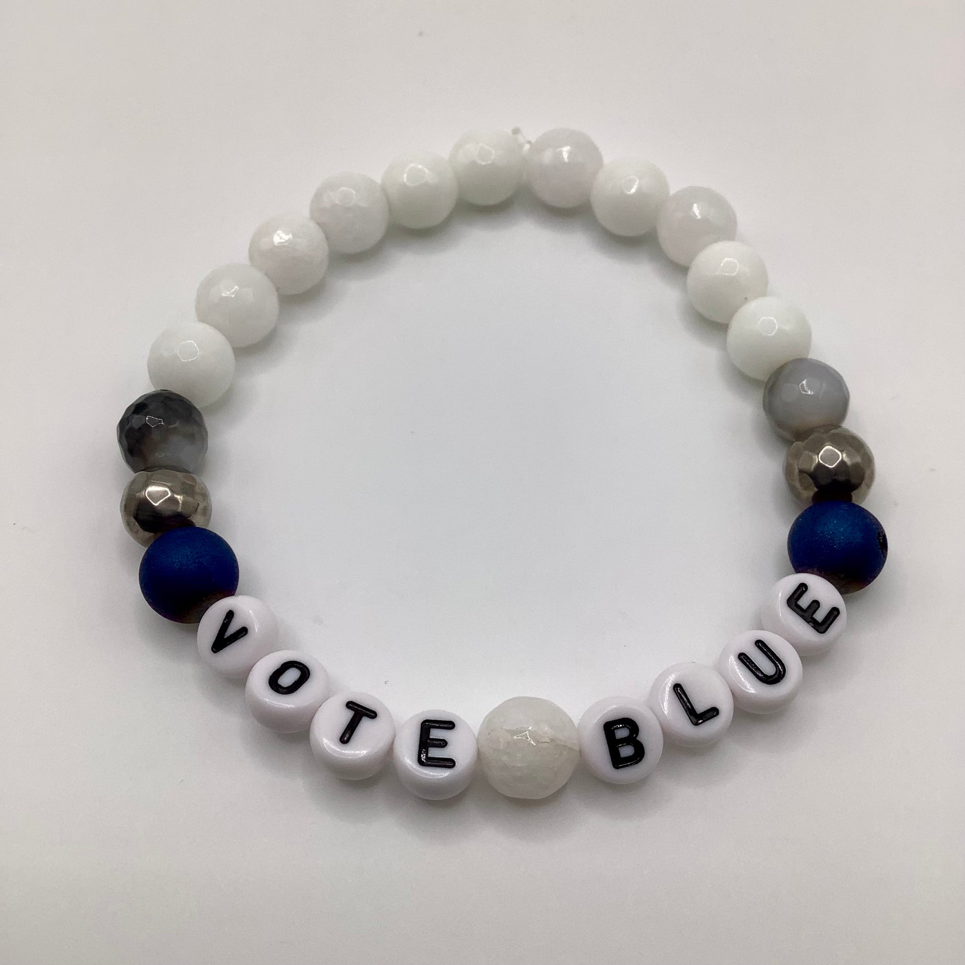 Vote Blue 8 mm Jade, Agate, Druzy