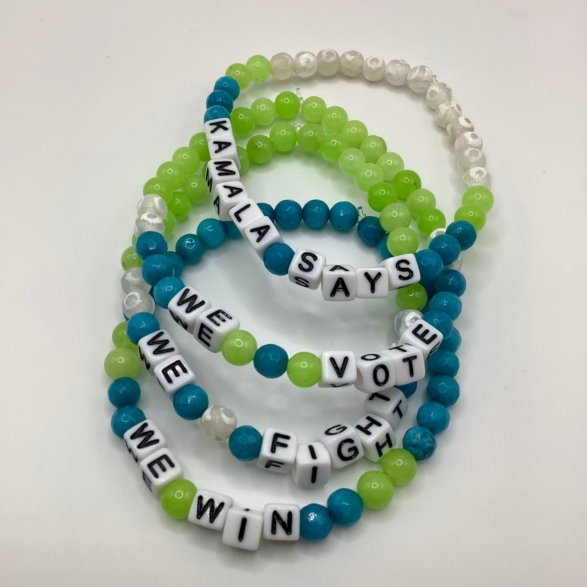 4pc set Kamala Says, We Vote, We Fight, We Win 6mm Jade and Agate